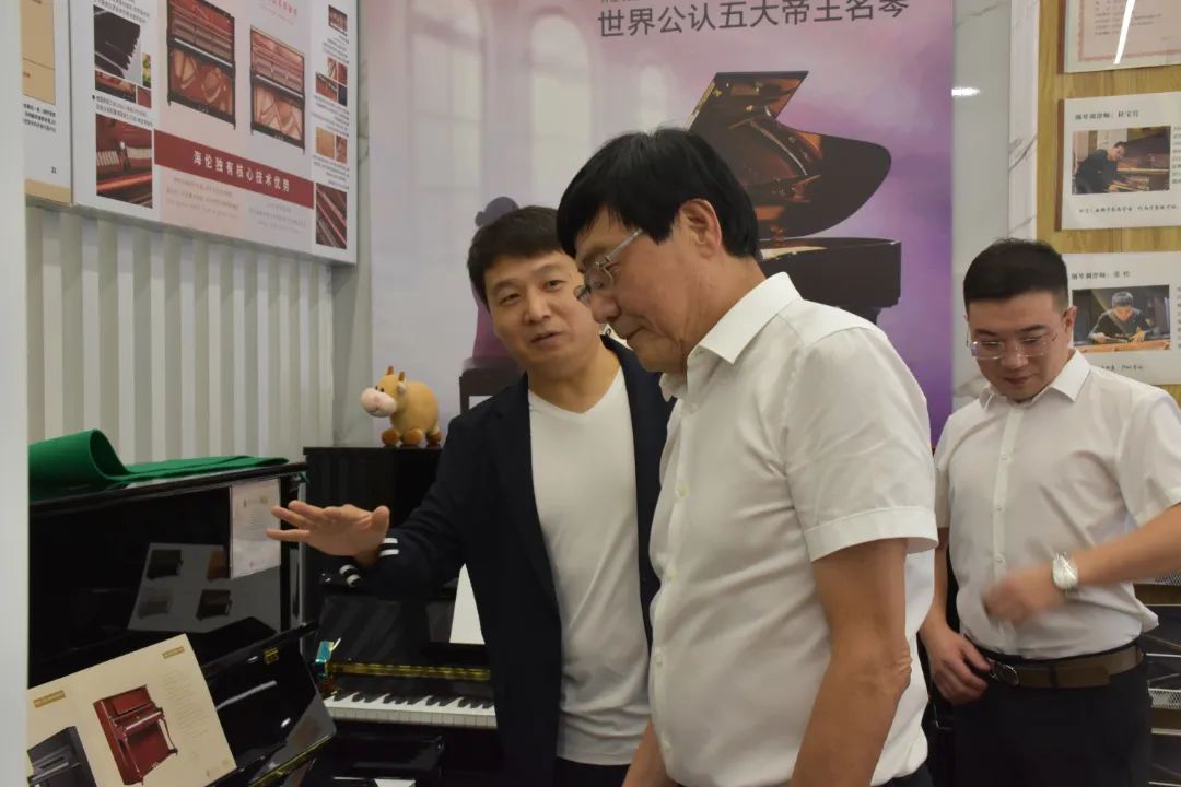 開幕式前,與會領(lǐng)導與海倫鋼琴、國威酒業(yè)等大會贊助企業(yè)進行了交流,領(lǐng)導們對海倫鋼琴提供的品牌樂器表示贊賞與肯定,并鼓勵樂器企業(yè)積極推進樂器“進校園、進社區(qū)、進家庭”的三進工程。