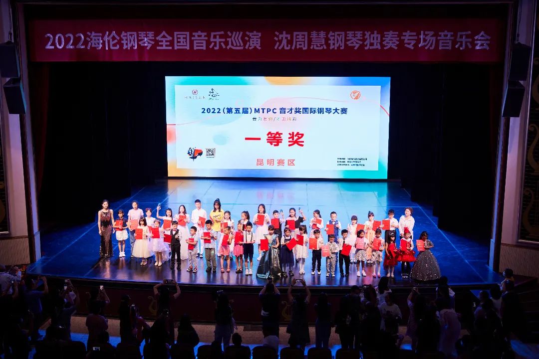 在之后的頒獎(jiǎng)典禮中,出席音樂會(huì)的領(lǐng)導(dǎo)為2022(第五屆)MTPC音才獎(jiǎng)國際鋼琴大賽昆明·賽區(qū)獲獎(jiǎng)選手們頒發(fā)證書與獎(jiǎng)杯,并合影留念。